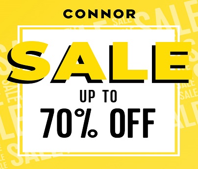 “SALE has started at Connor! Get up to 70% off selected products! Sizes will sell fast so get in quick!” T&C’s: Offer valid while stocks last. Prices as marked. Not valid in conjunction with any other offer or ‘2 for’ offers. See instore for details.